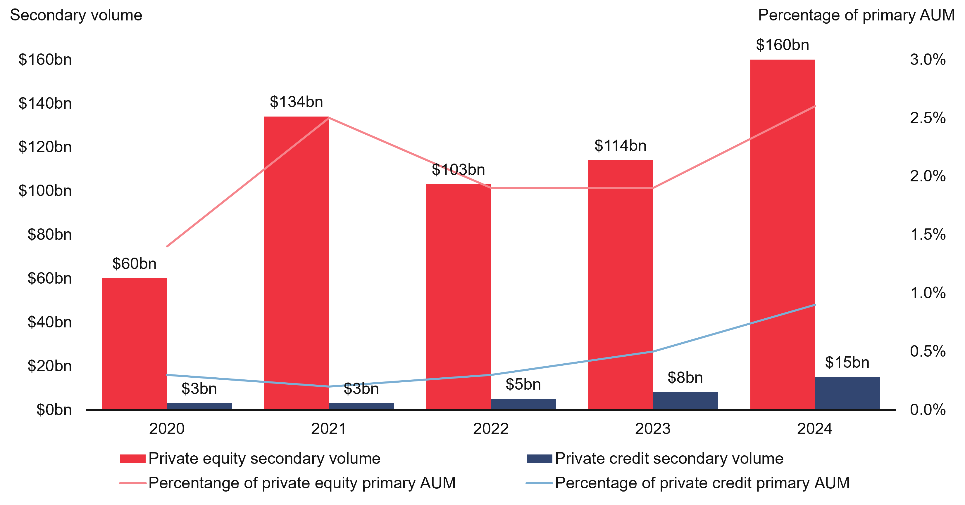 Figure 1: Secondaries volume and proportion of primary AUM