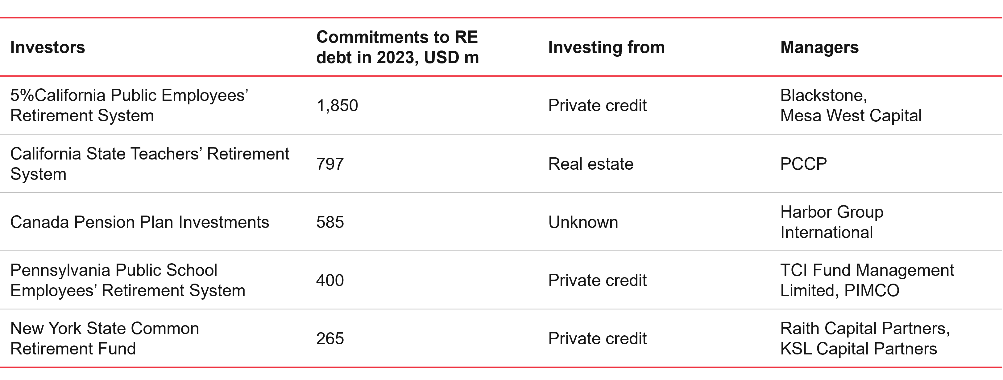Top five North American allocators in real estate debt funds in 2023