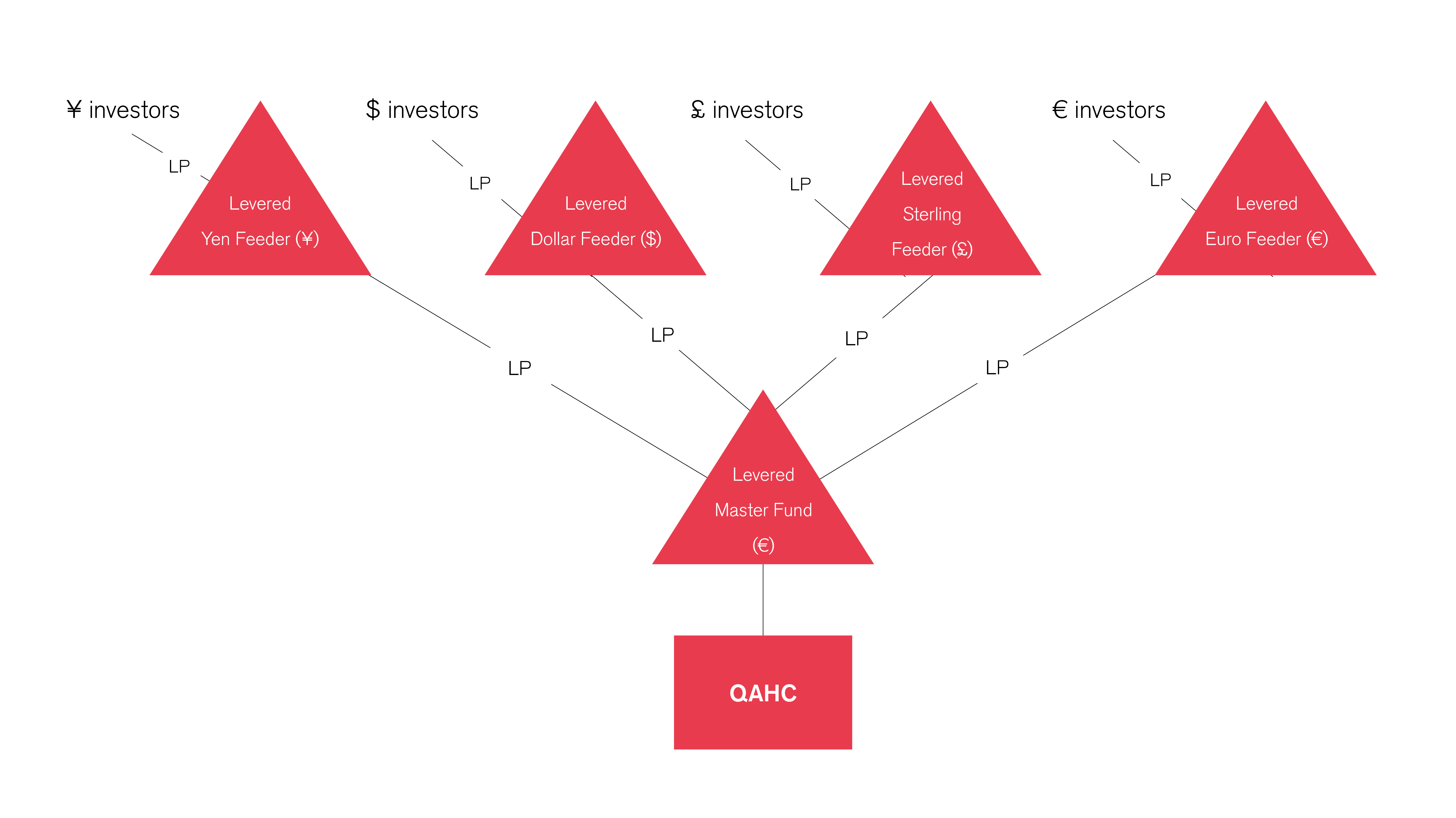 Taking the example below, all five funds (including the Master Fund) are a multi-vehicle arrangement as an investor regards the arrangement as one fund. However, it is still necessary for the arrangement to satisfy the GDO condition which should be possible if a non-fund specific marketing document is produced which markets the “arrangement” but not any particular fund. A PPM produced for the overall fund should adequately satisfy this.